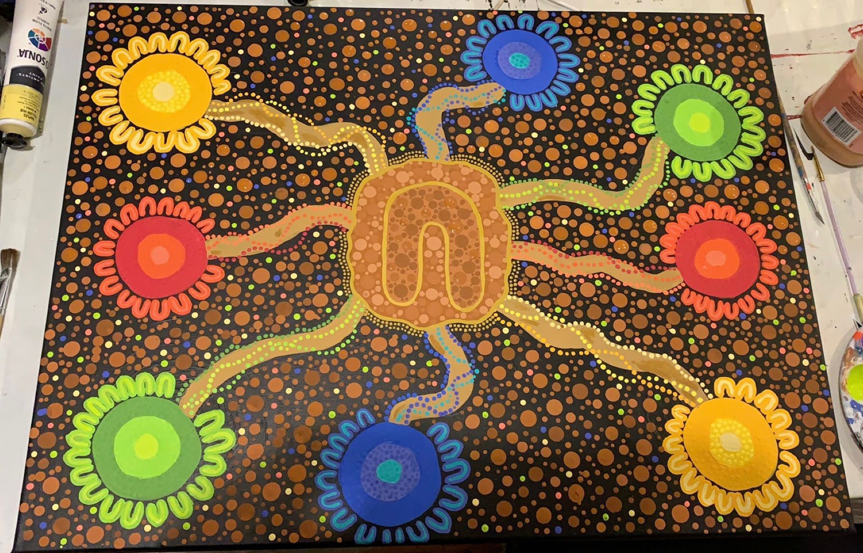 Out artworks are limited to on cotton, we do a range of art over a collection of different mediums. We do artworks for organisations seeking art for their RAP's, sporting clubs Aboriginal designed jerseys or even one for your home! If you're looking to commission an artwork let us know all about it below! Feel free to have a look at some of our previous artworks displayed underneath.