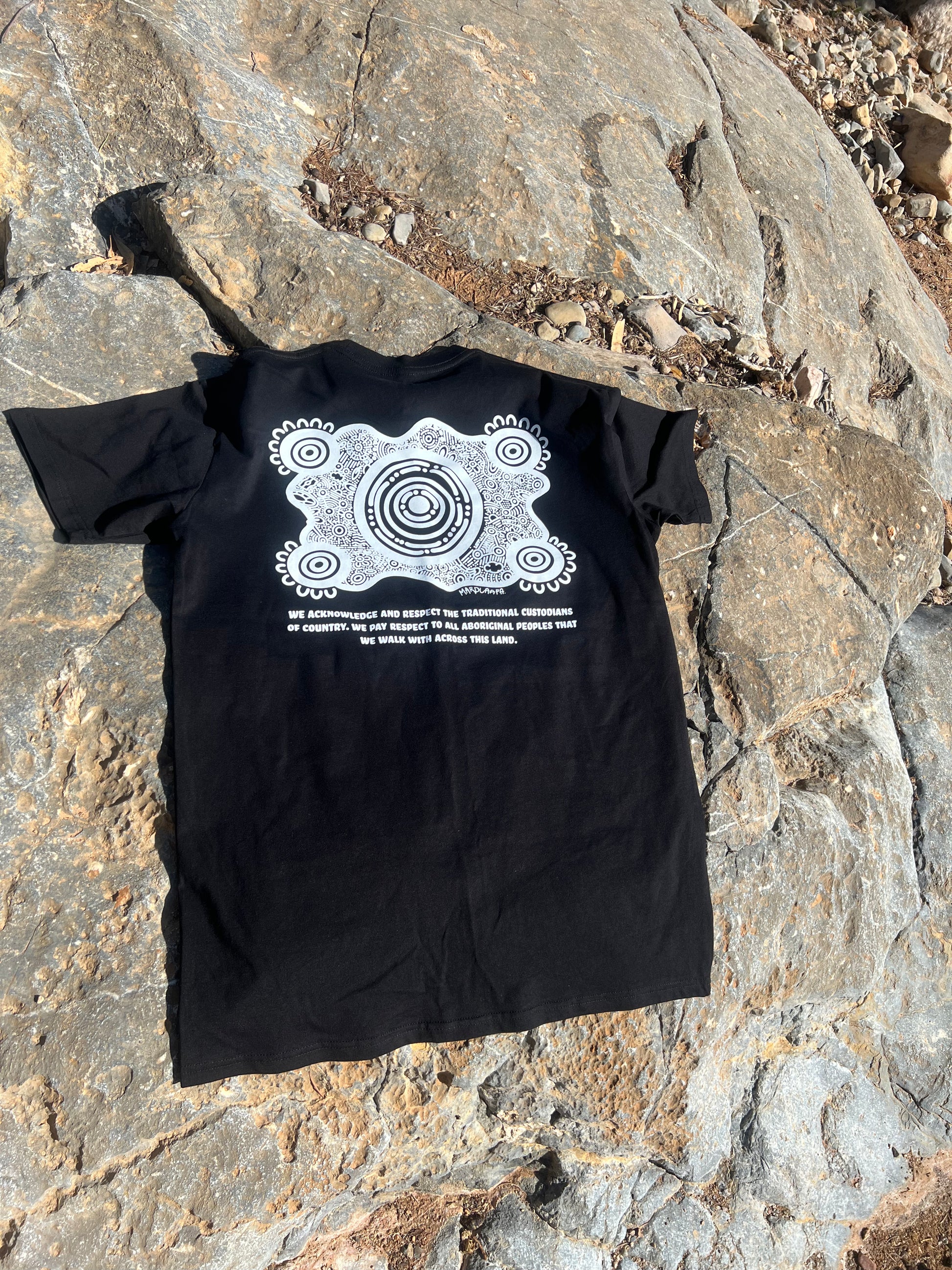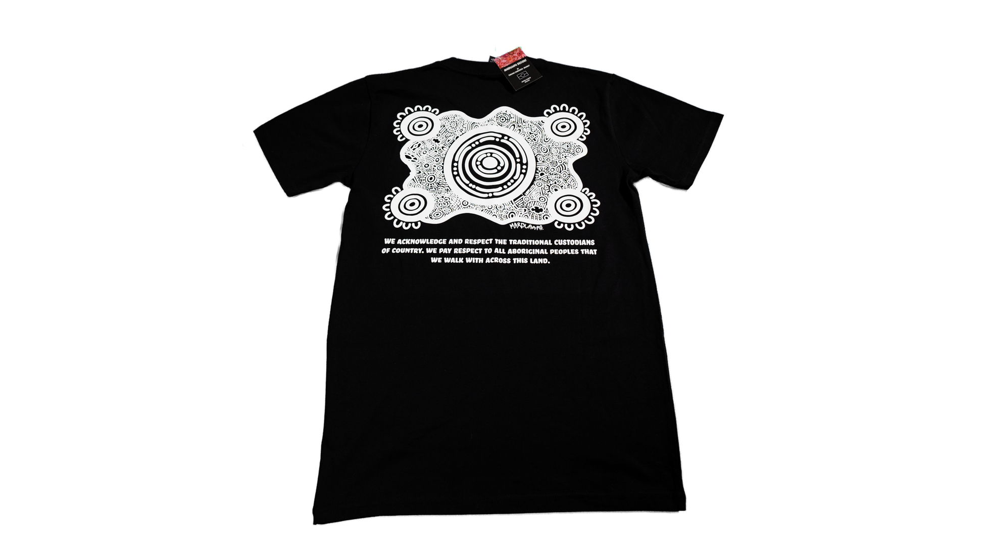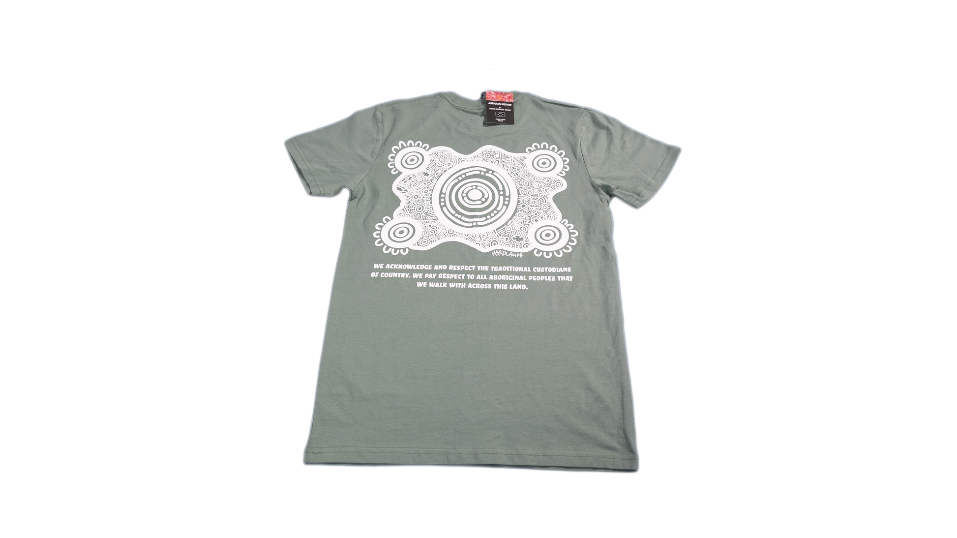 Acknowledging the traditional custodians of the land you live, work and play on is important. With our Acknowledgement T-shirt's you can share this message through fashion. This comfortable and stylish tee features a contemporary Aboriginal graphic designs as well as a written acknowledgement of country to follow. This tee comes in different colours, perfect for showing your respect for the traditional custodians of the land.
