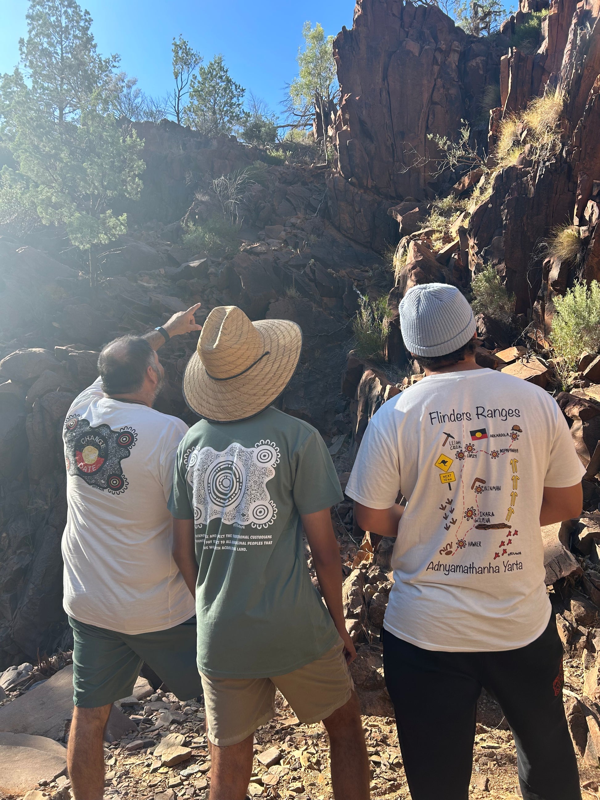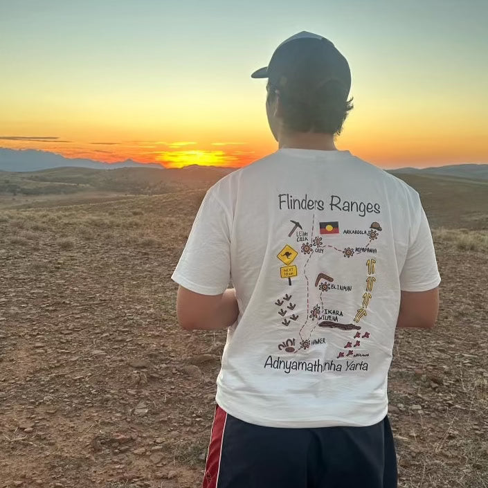 Introducing our Adnyamathanha Yarta Map Tee, a tribute to the rugged beauty and cultural significance of one of Australia's most iconic landscapes. Crafted with care and passion, this t-shirt seamlessly blends style with storytelling, making it a must-have for adventurers, nature lovers, and culture enthusiasts.